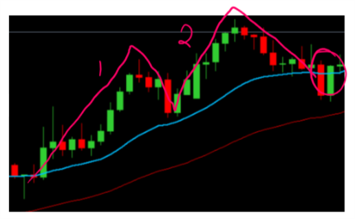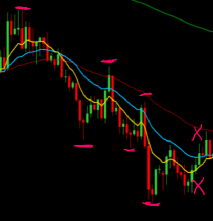 This indicates a break in trend and any potential set up to be ignored until there is either two cycles in the upward direction or another two cycles continuing downwards.