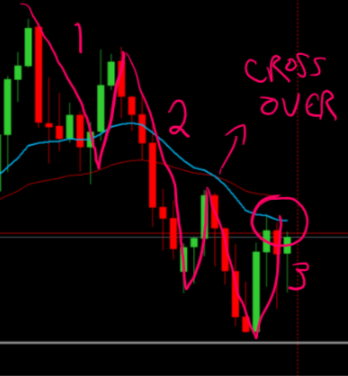FIG 5 showing two cycles a 20 and 50 EMA crossover and price retracing to the 20EMA
